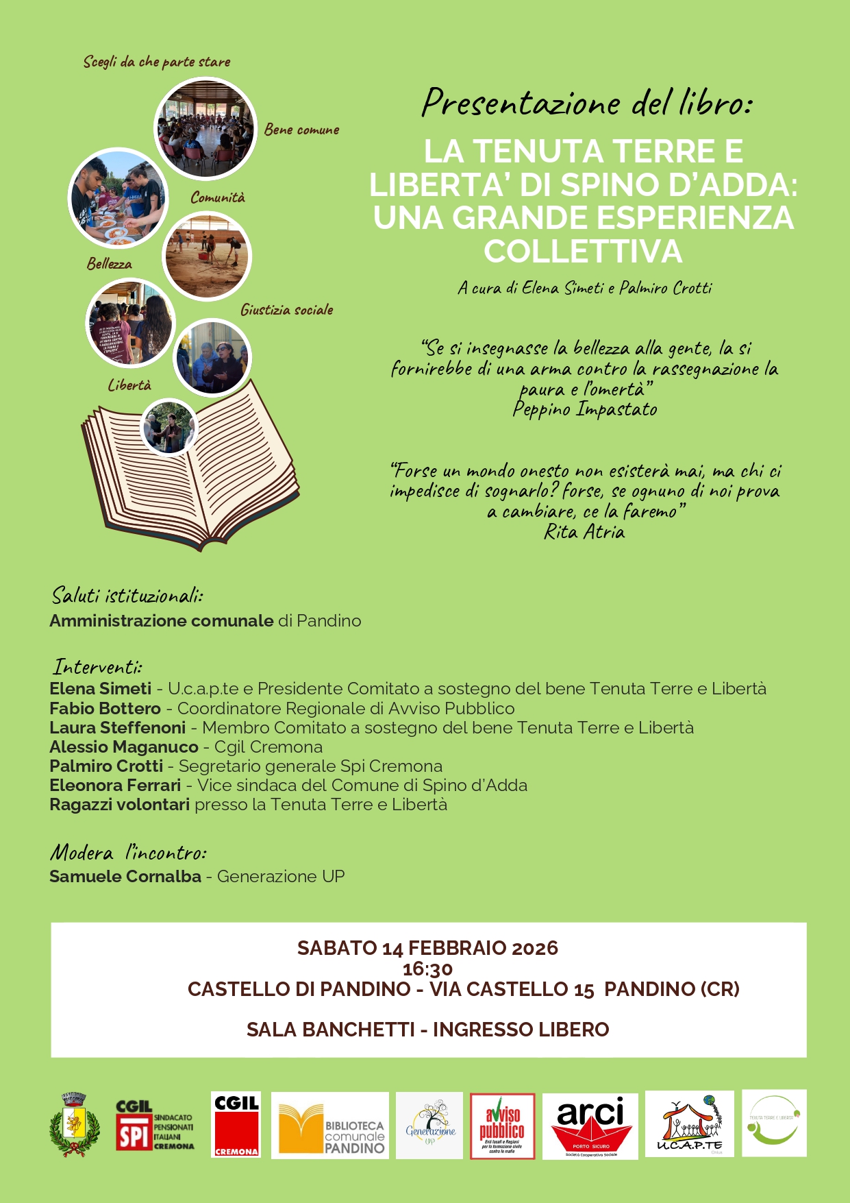 Non solo un libro: un racconto di voci differenti, che insieme hanno collaborato a restituire alla comunità la Tenuta Terre e Libertà di Spino d'Adda e a renderla un presidio di giustizia sociale, accoglienza, inclusione e futuro